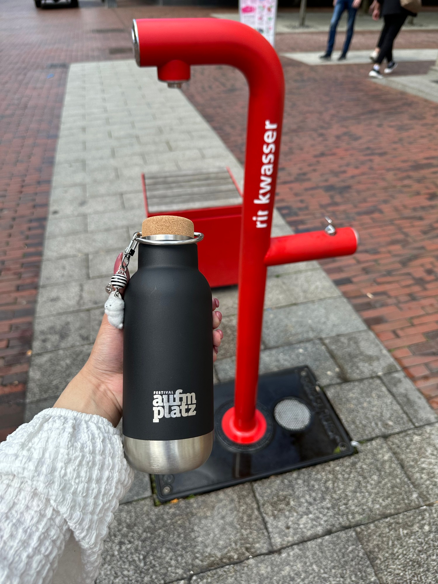Wenn die Sommersonne auf den Asphalt knallt und die Temperaturen steigen, wird ein Festival schnell zur Hitzebelastung – für das Publikum, die Künstler*innen und unser Team. Umso wichtiger ist es, für ausreichend Trinkwasser zu sorgen. In unseren Instagram-Stories machen wir deshalb regelmäßig auf öffentliche Trinkwasserspender in der Nähe der Veranstaltungsorte aufmerksam, falls sie verfügbar sind. Außerdem verzichten wir konsequent auf Einwegflaschen und setzen auf unsere „Festival aufm Platz“-Mehrwegflaschen für Künstler*innen und Team, die immer wieder aufgefüllt werden können.