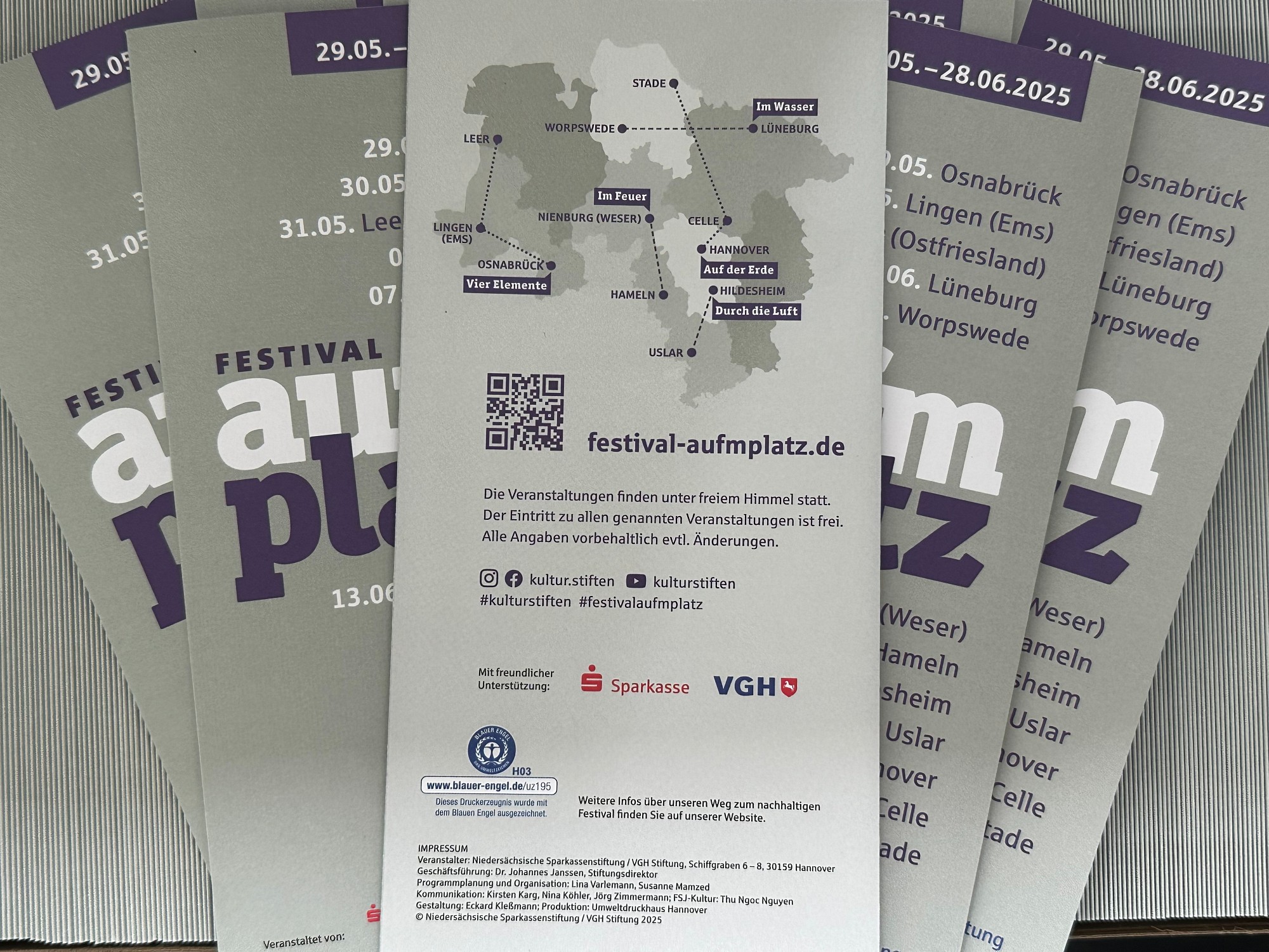 Ganz verzichten möchten wir auf Flyer & Co. aber nicht. Schließlich sorgen sie für Sichtbarkeit im Stadtraum und bieten etwas zum Mitnehmen. Deshalb arbeiten wir mit dem Umweltdruckhaus Hannover zusammen: einem Druckpartner, der nach einem konsequent nachhaltigen Energiekonzept arbeitet. Unsere aktuellen Printmedien wurden mit kobaltfreien Farben, ganz ohne Mineralöl und mit 100 % recyceltem Papier produziert. Dafür tragen sie jetzt sogar das „Blauer Engel“-Zertifikat!